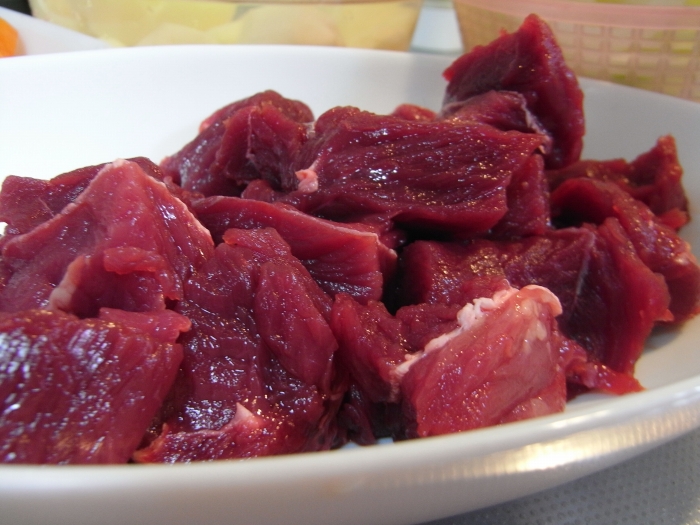 でもこうやって切るとスーパーで売ってるカレー用の牛肉にも見えたり。