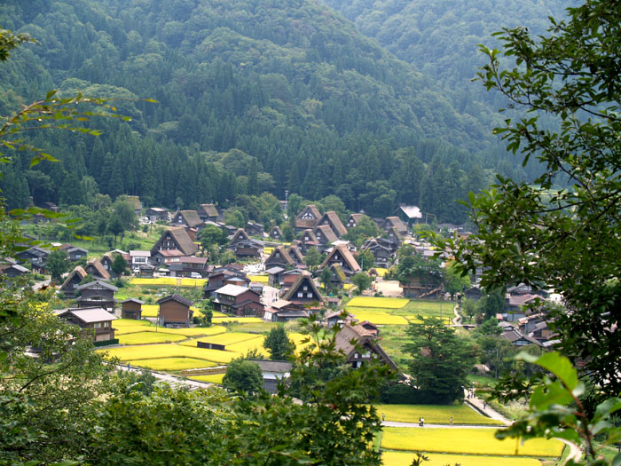 展望台から白川郷が見えます。真ん中当たりの田んぼです。