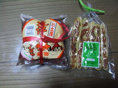 右:赤こんにゃくとふなずしパイ(スパイス味)