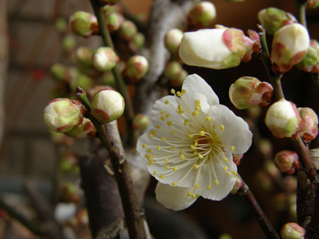 大体つぼみが真っ白なのに紅い梅が咲くわけがない(笑)
