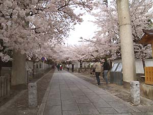 その向かいの桜並木の下は花見の場所取りのブルーシートだらけ。